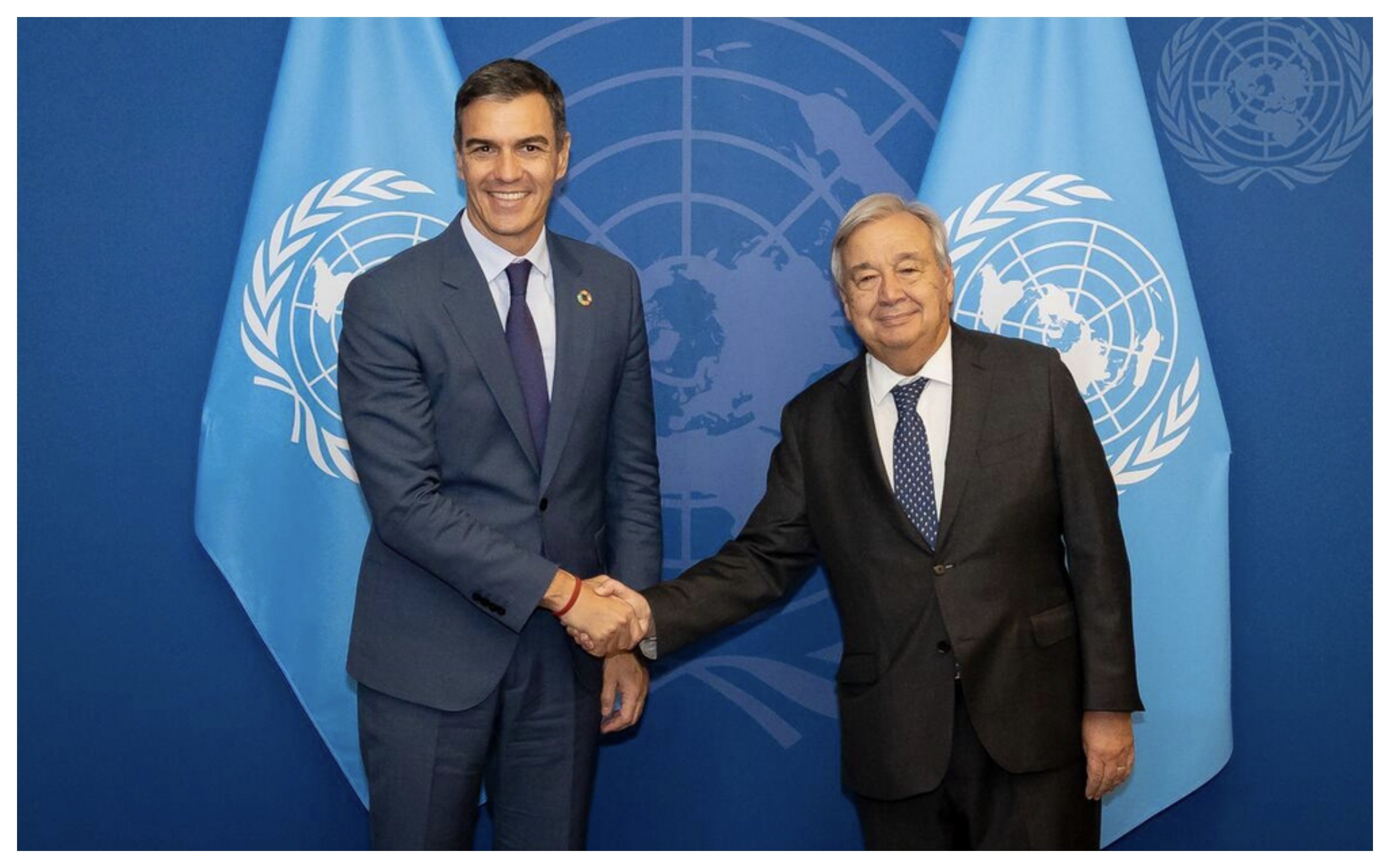Por último, en el tercer punto, la defensa de los derechos humanos, el presidente socialista español ha recurrido a los topicazos de siempre (¿quién no defiende los derechos humanos?): "Tenemos que mantener nuestro compromiso con los Derechos Humanos y la dignidad de las personas, sin discriminación de ningún tipo. En tiempos de conflicto hay que asegurar principios fundamentales como el Derecho Internacional o los principios de la Carta de Naciones Unidas. Y hay que seguir reforzándolos y actualizándolos a los retos de nuestra época. El respeto a la dignidad humana no puede ser selectivo ni condicionado por intereses políticos o estratégicos. Necesitamos movilizar la voluntad política y la acción decidida y urgente de la comunidad internacional para lograr un orden multilateral que responda con eficacia a los grandes desafíos de nuestro tiempo y a aquellos a los que se enfrentarán las generaciones venideras. Un multilateralismo del siglo XXI: efectivo, inclusivo, transparente y centrado en las personas".