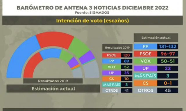 Pues bien: según el barómetro de Sigma Dos Antena 3 Noticias, el PP ganaría las elecciones, con el 30,1% de los votos y entre 131 y 132 diputados.