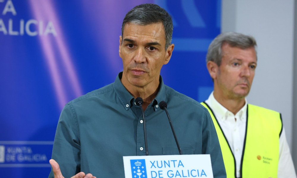 Intervención televisada del presidente Pedro Sánchez, conjuntamente con el presidente pepero de la Xunta de Galicia, Alfonso Rueda, cuyo rostro reflejaba sin palabras este mensaje: me la ha vuelto a jugar.