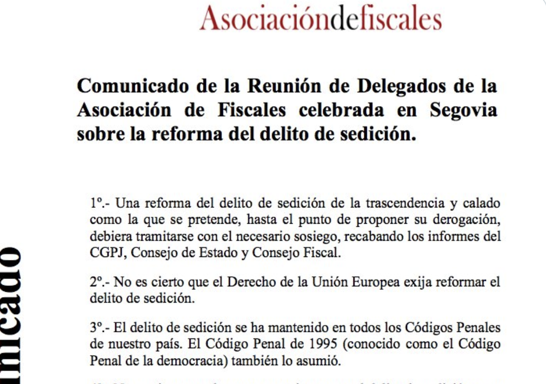 Semejante bajada de pantalones por parte del Gobierno socialista-comunista ha merecido hasta un comunicado por parte de la mayoritaria Asociación de Fiscales (AF), en los siguientes términos, que no tienen desperdicio: