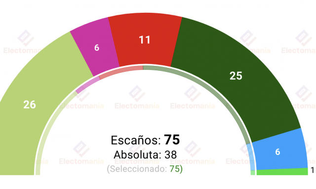 De un total de 75 diputados, la mayoría absoluta se sitúa en 38. Actualmente gobierna el país Vasco una coalición entre PNV (31) y PSOE (10).