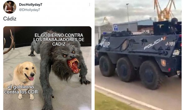 Sánchez manda una tanqueta del ejército para frenar las protestas de los trabajadores de Cádiz.