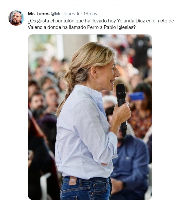 Por cierto, como siempre, los tuiteros atentos a cada detalle. Hasta en la marca de los vaqueros que llevaba la líder de Sumar se ha fijado algún que otro internauta. Les damos una pista: no es la marca de ropa de Podemos, pero sí es la firma propiedad de un empresario que la formación de Pablo Iglesias ataca continuamente....