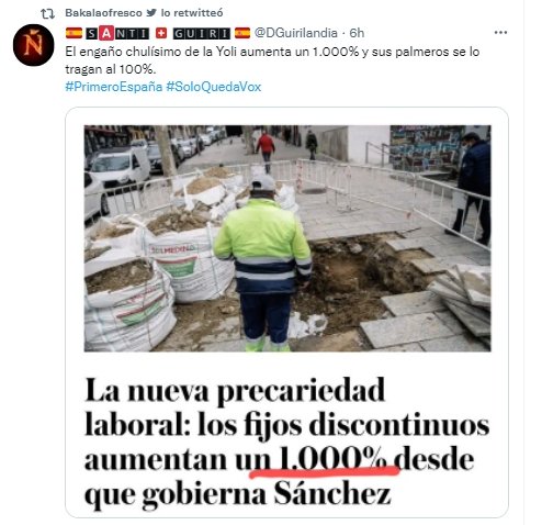 Y es que sí, los empleos temporales han caído pero no todos se han convertido en estables, muchos de ellos se han transformado en ese fijo-discontinuo, que cuenta como fijo pero que es igual de precario o más que un contrato temporal. Si en abril de 2018, cuando Sánchez se hizo con el poder, se firmaron 22.300 nuevos contratos fijos discontinuos, en el mismo mes de 2022 se han suscrito 238.700. Los datos también muestran que más de la mitad del empleo indefinido creado en abril, un 51%, es a tiempo parcial o fijos-discontinuos.