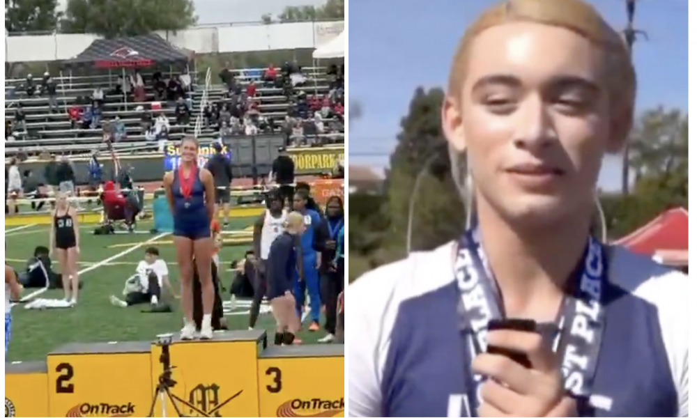 Transgender high school track star demolishes the female competition by *8 feet* in the triple jump at a track meet in California.