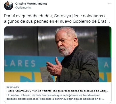 Por todo ello, no es de extrañar que el progre Lula da Silva vaya a fichar a miembros de la Open Society de George Soros para su Gobierno, informa La Gaceta.