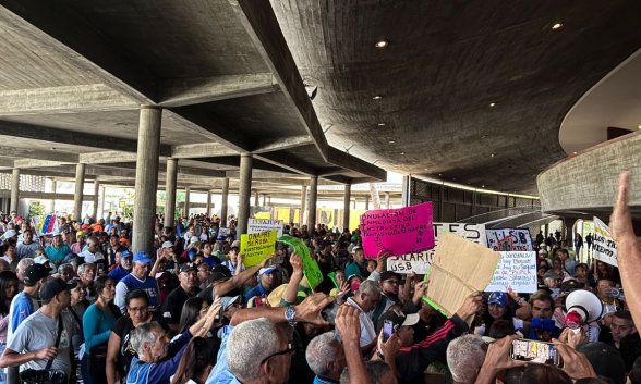 Así agrede la dictadura de Delcy Rodríguez a los ancianos venezolanos a los que tienen pasando hambre y a quiénes robaron sus pensiones.