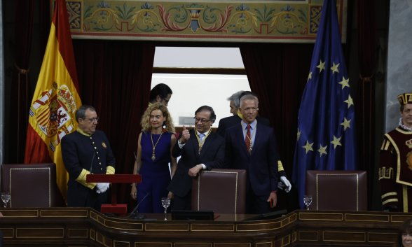 En la sesión conjunta de Congreso y Senado se han ausentado los diputados de Vox. Y la explicación la daba en un tuit, su presidente, Santiago Abascal: "Jamás existió ningún yugo, sino una hermosa hermandad, con una cultura, una fe y una visión del mundo compartidas. El único yugo que hay en Colombia es el que totalitarios como Petro han impuesto a su pueblo". “Intolerable que Sánchez ceda la tribuna del Congreso a este sujeto”.