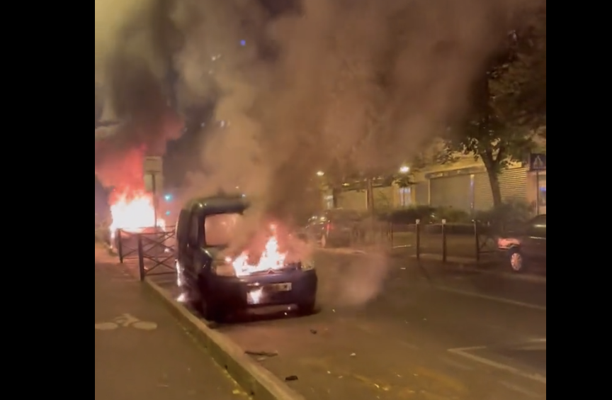Disturbios en Nanterre, Francia, tras la muerte de un joven de 17 años por disparos de la policía tras intentar huir con su automóvil después de ser detenido por los agentes. pic.twitter.com/67P9VUXblH