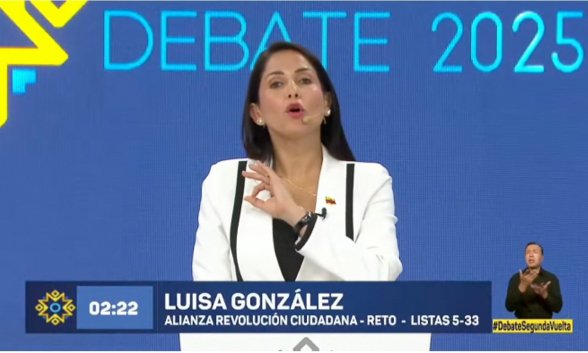La candidata presidencial del correismo, Luisa González, aseguró que Venezuela es su ejemplo a seguir, pues según ella: "Venezuela tiene mejores condiciones de vida que Ecuador..."