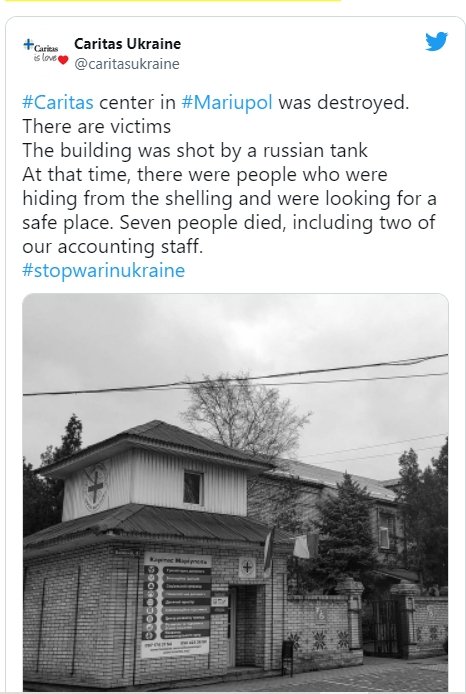 Ha sido en el ejercicio de su labor, cuando el centro Cáritas en Mariupol ha sido destruido por el disparo de un tanque ruso, según ha informado la organización. En el ataque han muerto 7 personas ya que había personas que se escondían del bombardeo y buscaban un lugar seguro. Dos de los fallecidos son personal de Cáritas, según ha informado la organización.