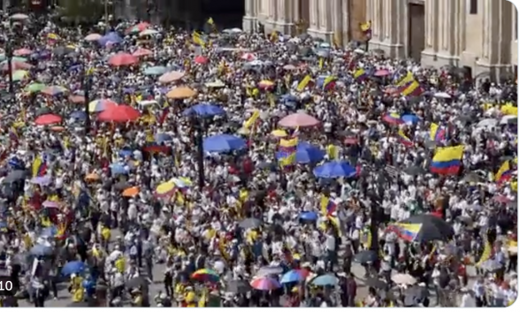🇨🇴 | Así se encuentra la Plaza Bolívar de Bogotá con miles de personas rechanzando la Presidencia de Petro.