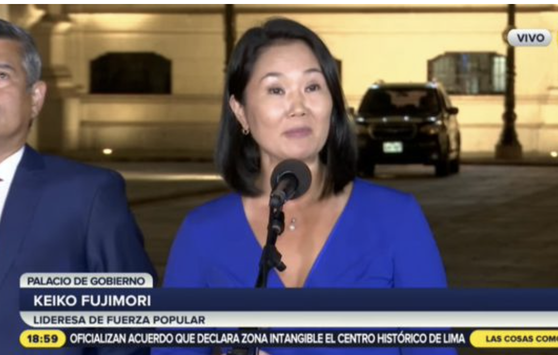 Keiko Fujimori, lideresa de Fuerza Popular, le respondió a Petro: "Quiero señalar después de las declaraciones de Petro le pido que no meta su nariz roja en el Perú. No vamos a aceptar el terrorismo exterior, quiero enviar mi saludo al pueblo colombiano, pero mi repudio total al guerrillero Gustavo Petro".