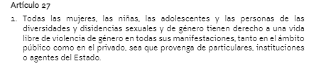 Por supuesto, ideología de género y aborto, artículo 61: "Toda persona es titular de derechos sexuales y reproductivos. Estos comprenden, entre otros, el derecho a decidir de forma libre, autónoma e informada sobre el propio cuerpo, sobre el ejercicio de la sexualidad, la reproducción, el placer y la anticoncepción".
