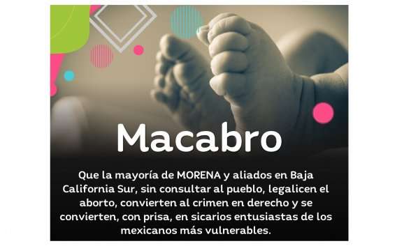 Porque el Congreso de Baja California Sur aprobó la despenalización del aborto hasta las 12 semanas de embarazo, algo que el Frente Nacional por la Familia calificó como “macabro”. El Congreso votó a favor de la reforma del Código Penal para la despenalización del aborto, con 16 votos y tres en contra. Baja California Sur se convierte en el noveno estado donde el aborto está despenalizado. La mayoría de los votos provino de Morena, el partido político del actual presidente de México, Andrés Manuel López Obrador. El director de ConParticipación, Marcial Padilla, dijo a ACI Prensa que “llama la atención cómo en un estado más de México, los diputados en vez de atender las necesidades de la mujer, que piensa en abortar, lo único que le saben dar es el aborto”.
