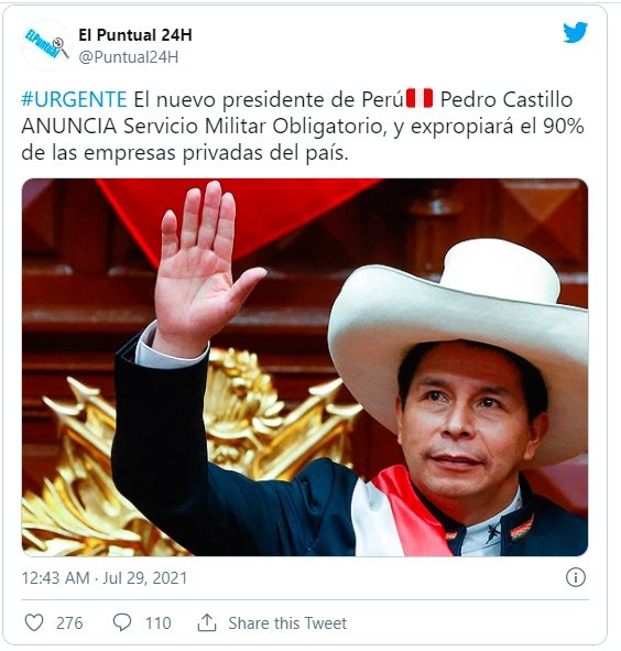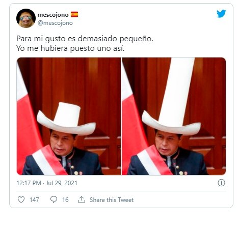 Mientras, su toma de posesión no ha pasado desapercibida en las redes donde los usuarios han expresado sus particular visión del nuevo mandatario peruano. Pasen y vean: