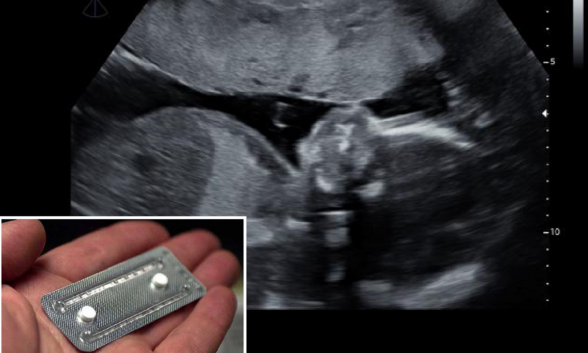Este tipo de aborto es el denominado aborto farmacológico, consiste en tomar dos medicamentos en dos fechas distintas que, combinados, provocan la expulsión del contenido del útero. Primero se toma la Mifepristona, "fármaco que bloquea la producción de progesterona": bloquear su producción supone algo así como asfixiar al feto. Segundo se toma el Misoprostol, "que es el que provoca la expulsión de la gestación", este medicamento produce contracciones en el útero, es decir, se expulsa mediante un fuerte sangrado el bebé que previamente has asfixiado.