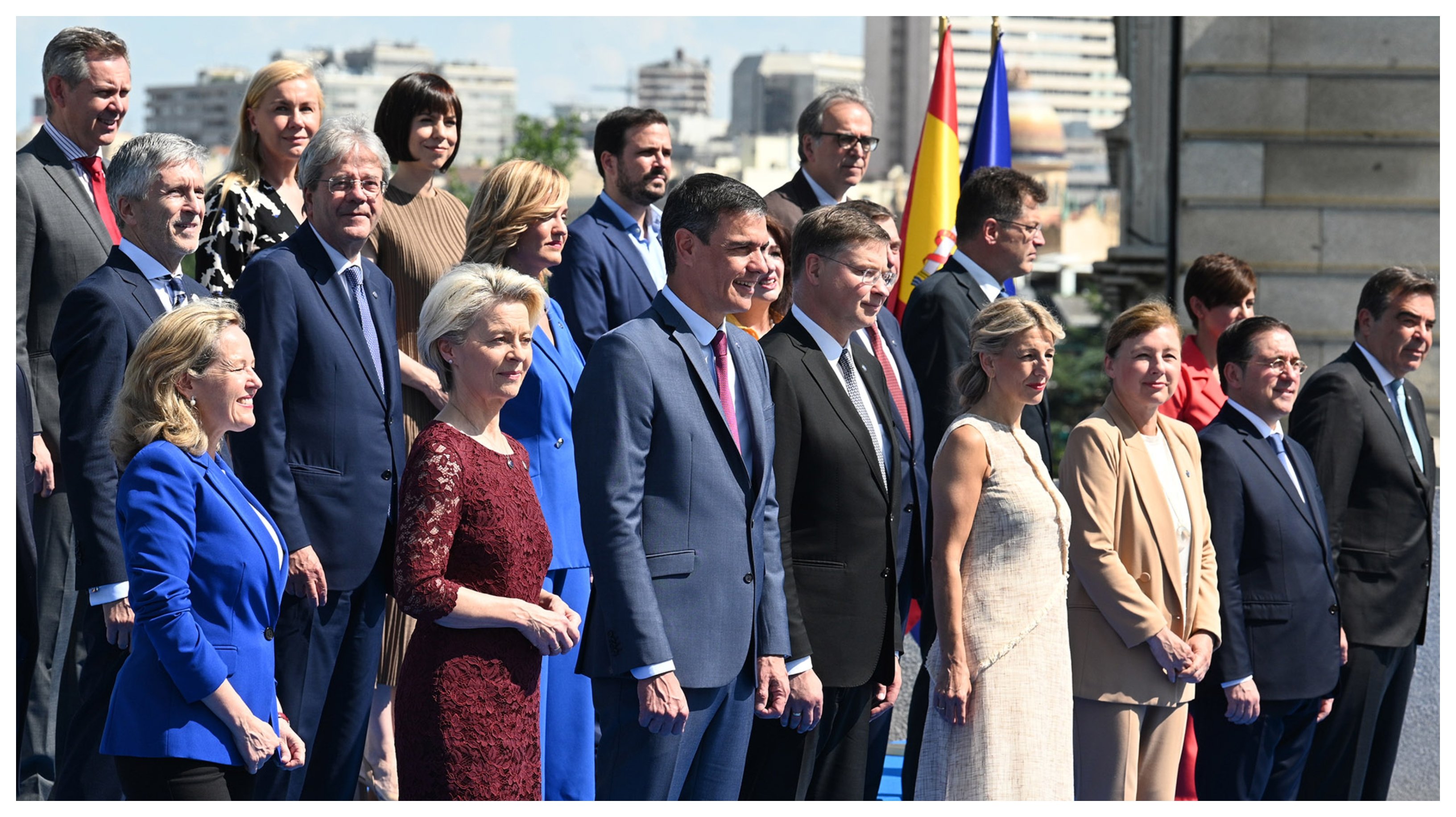 Nada menos que los 27 comisarios de la Unión Europea (el número ya la hace ingobernable) capitaneados por la alemana Ursula Von der Leyen, una progre de derechas. Junto al líder, todo el gobierno socio-podemita en funciones. En definitiva, una utilización de Europa en plena precampaña electoral española. Por todo lo alto.