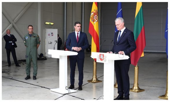 Comparecencia y rueda de prensa del primer ministro lituano, Gitanas Nauseda, en la base de la OTAN de Siauliai, en Lituania, junto al presidente del Gobierno español, Pedro Sánchez.