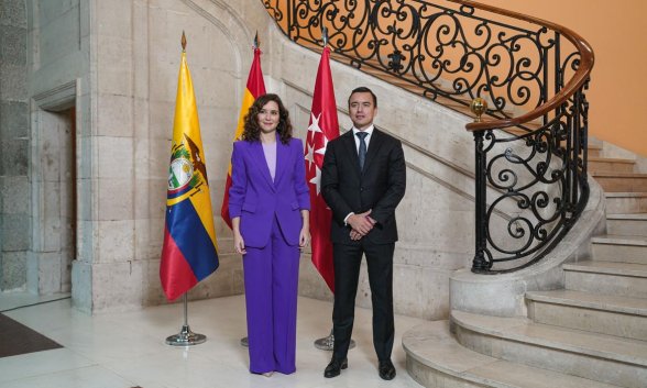 Este viernes, el presidente electo Noboa -que sucede en el cargo a Guillermo Lasso- se encuentra de visita en España, donde ha sido recibido por la presidenta de la Comunidad de Madrid, Isabel Díaz Ayuso, en la Real Casa de Correos.