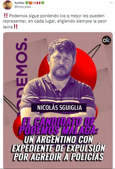 El elegido es el italoargentino Nico Sguiglia, se trata de un ciudadano con doble nacionalidad, hasta aquí todo normal, pero al que le fue abierto un expediente de expulsión del país por presuntamente agredir a agentes de Policía y por causar "desórdenes públicos".