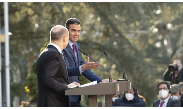 "Periodistas gripalizados". se escucha en el murmullo de 'cagatintas' españoles. Definición acertada. Y es que, con pose regia, Pedro Sánchez ha convocado a los plumíferos una hora antes de su rueda de prensa con el canciller alemán, Olaf Schulz y perpetra la conferencia de prensa en los jardines de la Moncloa, sin utilizar la preciosa sala de prensa climatizada en el interior, esto con una temperatura de -con permiso del calentamiento global- frío rasante del enero madrileño.