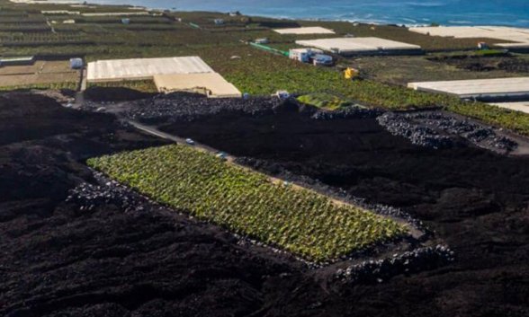 Respecto al cultivo platanero, el primer hito se logró a principios de 2025, cuando los agricultores lograron cosechar 195 piñas de plátanos en una finca reconstruida en el Valle de Aridane y asociada a la organización de productores Europlátano. Gracias a la resiliencia de los agricultores y su esfuerzo afrontando desafíos -como enfriar la tierra, nivelar el terreno y reconstruir sistemas de riego-, así como a las técnicas de sorriba (añadir una capa de tierra fértil sobre las coladas de lava), y a la colaboración de instituciones públicas y privadas, se empezaron a recuperar terrenos y en abril de 2024 se procedió a sembrar en suelos volcánicos.