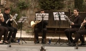Los encargados de inundar con sus notas musicales estas 3 localidades han sido: un dúo de cuerda y un quinteto de viento, formados en la Escuela Superior de Música Reina Sofía, que celebra su 30 aniversario.