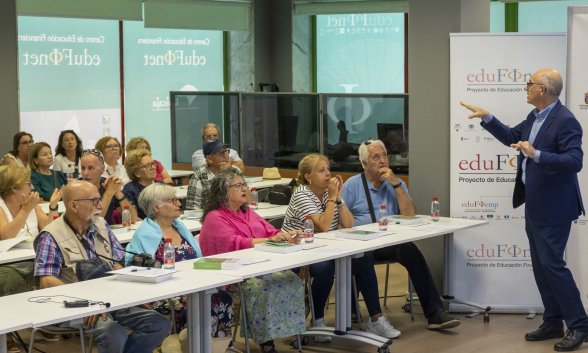 La iniciativa ‘Embajadores de Edufinet’ se presentó hace tres meses, en una jornada formativa donde mayores de 65 años del centro Vuela Guadalinfo Monachil de Granada pudieron adquirir nociones básicas sobre economía, finanzas y ciberseguridad, de la mano de empleados de banca y de agentes del Cuerpo Nacional de Policía. Estos ‘embajadores’ son personas que, voluntariamente y con vocaciones de permanencia, pasan a ser un canal de enlace con los mayores en los municipios para conocer de primera mano sus inquietudes y necesidades, pudiendo facilitar la adecuación de la formación del proyecto. Se trata de una iniciativa específica de educación financiera para mayores, que impulsa el ‘Proyecto Edufinet’ (el cual existe desde hace casi 20 años), tiene la colaboración de 17 universidades y más de una decena de entidades y organizaciones empresariales, y que está patrocinado por la Fundación de Cajas de Ahorros (Funcas).