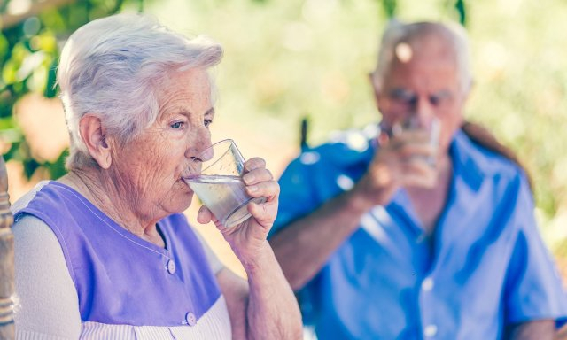 5. Insistir en un buen aporte de líquidos, aunque no se tenga la sensación de sed (evitando el consumo de bebidas alcohólicas): agua, infusiones, zumos de frutas… En los mayores con disfagia (dificultad para tragar), potenciar la hidratación con agua gelificada o utilizando espesantes. Lo ideal es tomar agua, pero si la rechazan por el espesante, podemos probar con otras bebidas que sepamos que les gustan y espesarlas (zumos, refrescos, batidos de sabores...). Otra manera de hidratar, si nos cuesta, sobre todo en pacientes con deterioro cognitivo, son los helados tipo "polo".