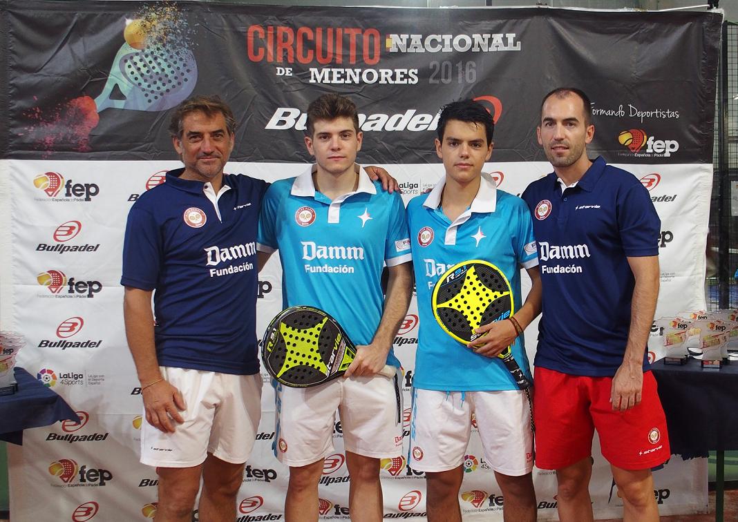 - ¿El proyecto es de largo recorrido? - Un proyecto de esta envergadura solo se entiende si se desarrolla en el tiempo. La educación y el conocimiento de las disciplinas deportivas solo se consiguen con constancia y perseverancia. Por ello el proyecto de la Fundación con el club de pádel Damm es a largo plazo para de esa forma poder alcanzar todos los objetivos de mejora del deporte de educación y de pertenencia a los valores del CP Damm. De hecho en la actualidad contamos con 30 jugadores/as repartidos en tres instalaciones y con proyectos de aumentar las sedes en otras ciudades. Esperamos duplicar el número de jugadores en los dos próximos años. - ¿El club ha cosechado éxitos deportivos? - En su corta historia, el club ya ha cosechado varios éxitos deportivos a nivel de resultados. Tanto a través de los jugadores que lo componen como en competiciones por equipos. Como habéis visto en este Campeonato de España de Menores, los campeones benjamines, David Gala-Juan Magán, y la pareja júnior Coki Nieto–Javi G. Barahona son jugadores de nuestro Club. Coki y Barahona ya se proclamaron campeones de España cadete hace dos temporadas. Por equipos somos los actuales Campeones de España en categoría infantil y júnior, Campeones de segunda categoría absoluto de Madrid, Subcampeones de España de tercera absoluto y Campeones de 2a de la liga juvenil de Madrid. En el último Campeonato de España sub-23 las dos parejas que jugaron la final eran jugadores del CP Damm, Galán-San Roman y Nieto-Barahona. En el último mundial celebrado en Méjico, varios jugadores participaron en el equipo nacional y uno de nuestros jugadores se proclamó Campeón del Mundo con la Selección Española. De nuestra cantera también salió, en su momento, la campeona del Mundo Junior. Por tanto, aunque es un proyecto joven ya ha conseguido unos resultados de relevancia.