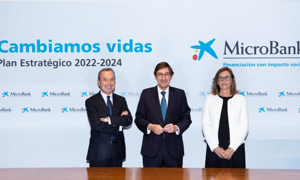 El presidente de CaixaBank, José Ignacio Goirigolzarri, ha anunciado que MicroBank, el banco social de CaixaBank, concederá hasta final de 2024 un total de 3.500 millones de euros en financiación con impacto social, con el objetivo de beneficiar a más de 400.000 familias vulnerables, emprendedores y microempresas. El Plan Estratégico 2022-2024 de la entidad contempla destinar 1.850 millones a los hogares y 1.600 millones, a los negocios y emprendedores.