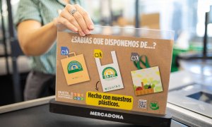 Ahora la cadena ofrece a los Jefes (clientes) bolsas compostables, fabricadas a partir de fécula de patata, que deben depositarse en el contenedor de materia orgánica, como indica el pictograma que se ha incluido en las bolsas con la intención de facilitar a los clientes la separación y reciclaje de sus residuos. Este símbolo también se ha incorporado al resto de bolsas de la línea de cajas donde Mercadona dispone desde hace tiempo de tres opciones reutilizables y sostenibles.