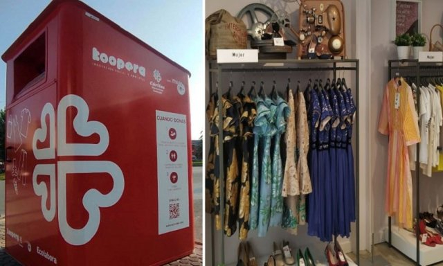 Esta cooperativa se dedica a la gestión del círculo completo de la ropa usada (recogida, preparación para reutilización, reciclaje, donación y venta) y lo hace generando empleo social y sostenible, y apostando por el consumo responsable con campañas de sensibilización. Cada año recoge más de 40 millones de kilos (o lo que es lo mismo, más de 40.000 toneladas) de ropa, calzado y complementos de segunda mano a través de los cerca de 7.000 contenedores que tiene colocados en las calles y en localizaciones privadas (colegios, centros de salud, supermercados…), y de ahí el material se envía a una de las tres plantas de tratamiento integral que tiene (ubicadas en Valencia, Barcelona y Bilbao), donde se clasifica, selecciona e higieniza. Sólo la labor de la recogida y el tratamiento de las prendas genera unos 1.200 empleos, de los cuales la mitad están reservados a personas en situación o riesgo de exclusión social. Estas cifras convierten a Moda re- en el mayor operador de España y en uno de los proyectos de reutilización y preparación para el reciclaje con mayor proyección a nivel europeo.