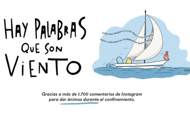 “La idea detrás de mi viñeta “Hay palabras que son viento” viene de la metáfora de la travesía”, nos cuenta Dalmau Oliveras (@dalmaus). “Ahora mismo estamos en una travesía bastante complicada, y me puse a pensar en qué era lo que nos podía animar durante este trayecto. En una travesía por mar, lo más importante es el viento. Y las palabras de la gente pueden ser precisamente ese viento que lo mueve todo. Sobre todo se necesita apoyo en lo material para satisfacer las necesidades básicas, pero también es vital ese aliento de la gente, conocida o desconocida, que nos da fuerza. Al ilustrador le gustaría que el libro llegara “a todas esas personas que no son un colectivo en sí, a la gente que está más sola”.