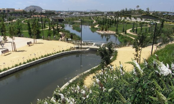 El desarrollo de soluciones basadas en la naturaleza es otro de los ejes de Agbar. En el ámbito urbano, el parque La Marjal, en Alicante, es una zona de ocio inundable, creada para retener las aguas pluviales y mitigar así las inundaciones en la ciudad durante los episodios de lluvias torrenciales, que sirve también de refugio para especies de vegetación y fauna de la región.