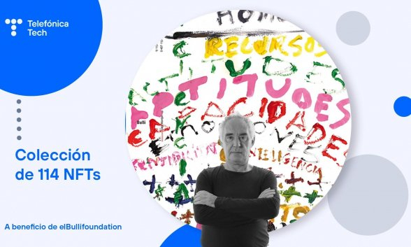 Telefónica ha lanzado una colección de 114 NFTs asociada a una serie de 114 dibujos únicos, en formato digital, realizados por Ferran Adrià que simbolizan la historia de la evolución culinaria. Cada NFT es una copia digital exclusiva de cada dibujo, que va acompañada de un certificado digital de autenticidad registrado en Blockchain que permite atribuir y demostrar la propiedad del contenido. Los NFTs son tokens no fungibles, es decir, un activo criptográfico que está certificado como único e irrepetible.