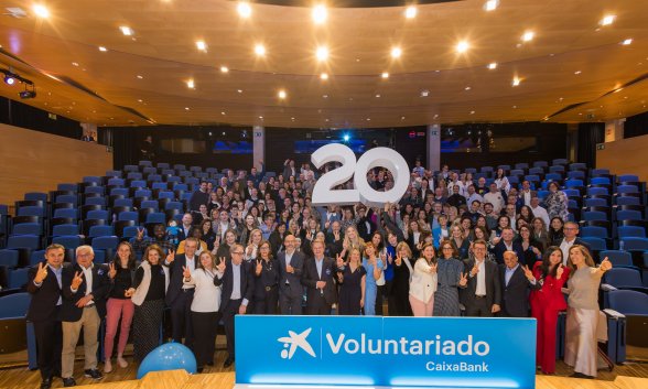 Voluntariado CaixaBank conmemora este año su vigésimo aniversario y ha celebrado en Barcelona un acto de reconocimiento a los voluntarios, así como a la labor de las entidades sociales. La efeméride llega en un momento en el que Voluntariado CaixaBank ya moviliza a más de 20.000 voluntarios al año, empleados y exempleados del Grupo CaixaBank y de la Fundación “la Caixa”, así como amigos, familiares, clientes de CaixaBank y todas aquellas personas que quieran participar en actividades solidarias.