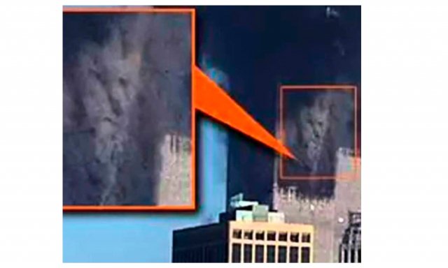 ¿Fue un capricho de la geometría del humo provocado por el impacto asesino? Ni lo sé ni me importa. Dios no necesita utilizar dibujos en una nube tóxica para demostrar que los atentados del 11-S fueron una obra demoniaca, ordenados por un miserable -es decir, un endemoniado- llamado Bin Laden y perpetrados por unos fanáticos endemoniados que se creían mártires de Alá.