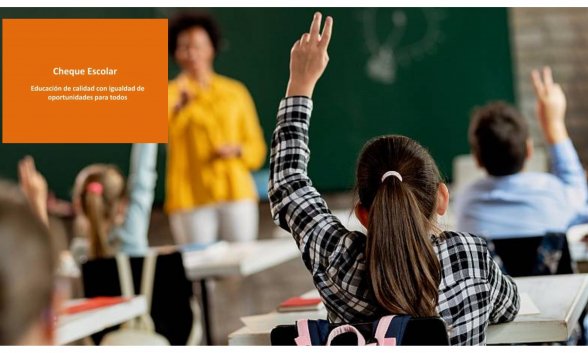 El cheque escolar se lo entregaría el Gobierno (el Estado) a los padres y cubriría el coste total de la educación de su hijo. Es decir, con él, los padres elegirían el colegio que prefieran para sus hijos, sea colegio público o privado. Naturalmente, la izquierda siempre se ha opuesto porque sabe, aunque lo oculta, que serían muy pocos lso padres que eligirían un colegio público para sus hijos, especialmente en tiempos de ideología de género y de perversión de los niños desde su más tierna infancia.