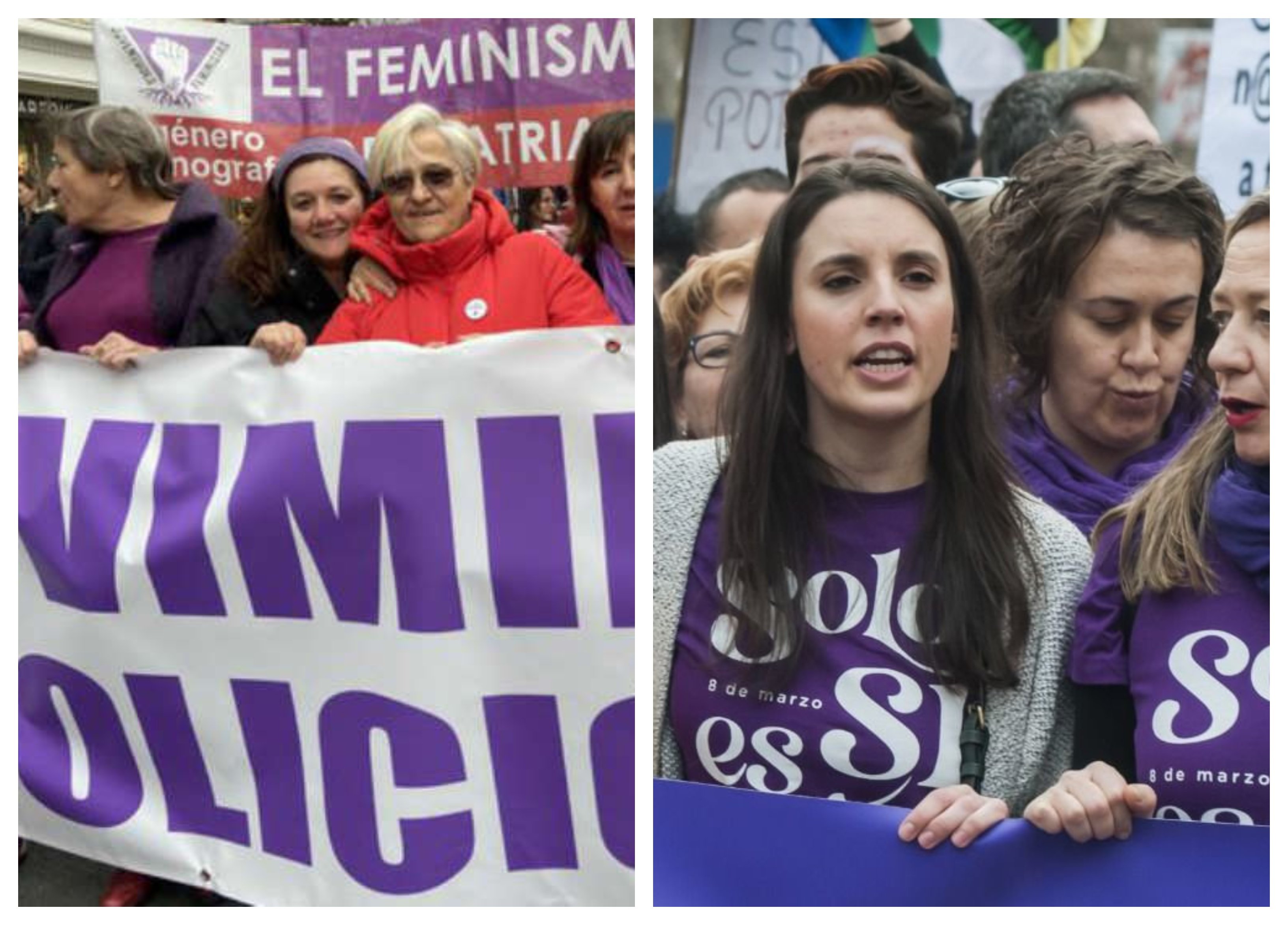 A ambos movimientos les separan la abolición de la prostitución y la Ley Trans. Las feministas clásicas, como la socialista Ángeles Álvarez, están en contra de la ley Trans de la ministra Irene Montero y de la autodeterminación de género bajo la premisa de que si no existe la mujer, tampoco existen los derechos de la mujer. El principal aspecto que ha creado dicha reacción es que la Ley del ministerio de Igualdad «utiliza la palabra género cuando habría de utilizar la palabra sexo», critican las alegaciones redactadas por la Alianza Contra el Borrado de las Mujeres, movimiento feminista vinculado con el partido que lidera el Gobierno.