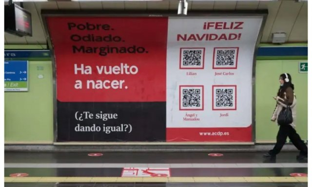 La campaña, presente en ciudades como Madrid, Barcelona o Sevilla, rememora cómo nació Jesús: en un establo de Belén, perseguido por los soldados de Herodes, recordando así que acoger al Hijo de Dios es también acoger a los más vulnerables -sea el niño a quien quieren asesinar antes de nacer o la persona sin hogar que llama a la puerta- y lanza un desafío: «¿Te sigue dando igual?».