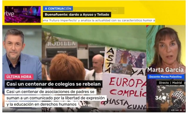 Esa profesora zurda representa a la plataforma Marea Palestina, lleva una camiseta de "Palestina libre", y quiere hacernos creer que no adoctrina ni suelta soflamas en sus clases.pic.twitter.com/zcGvjhxhJq