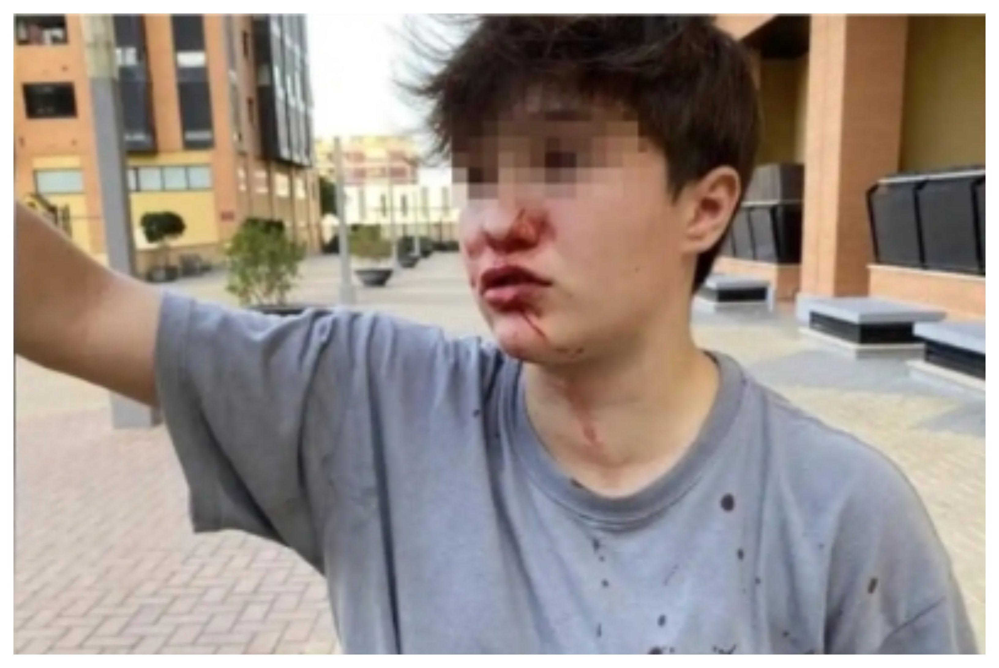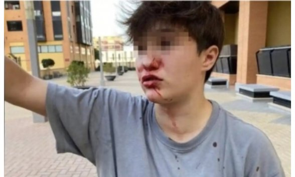 "El caso es que yo al saltar de la rabia del banco me he metido a empujarlo cuando me empiezan a pegar entre 5 niños, con puñetazos en la boca y en la cara, dejándome en estas condiciones, pero no acaba aquí, porque después de que me empujasen entre 5 niños o 6 me voy para atrás de los golpes que me estaban dando y me viene un chico que creo que era morito y me pega un puñetazo en la nariz, rompiéndome un vaso sanguíneo y dejándome la nariz destrozada y sangrando".