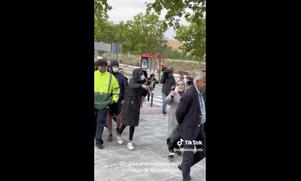 A la hora del desalojo se vivieron momentos tensos en las que varias okupas sufrieron desvanecimientos, pero parece que han recuperado la energía, por lo que podemos ver en el siguiente vídeo, en el que insultan y acosan a uno de los concejales de Vox de Alcobendas.
