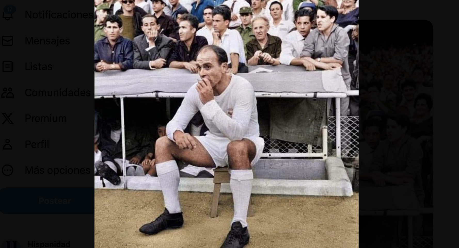 En la instantánea que corre por las redes puede verse a la estrella histórica del Real Madrid, Alfredo Di Stéfano, fumándose un cigarrillo, en pleno partido y sin que nadie le moleste.