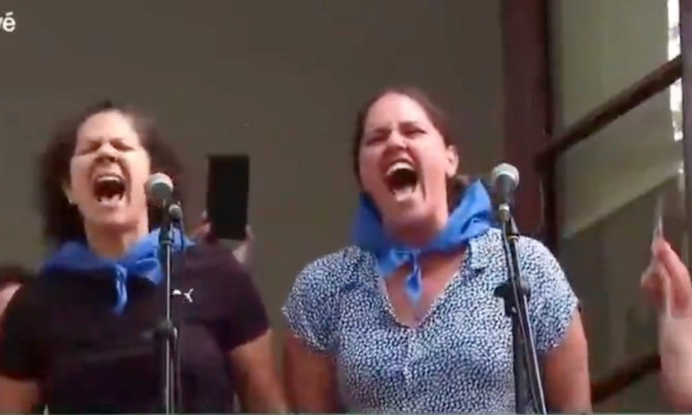 El momento, por lo absurdo, cómico y surrealista no tardó en hacerse viral. Y ahora la historia se repite en las Fiestas Mayores del barri barcelonés de la pequeña burguesía catalana: Sants. Se trata de las actrices mallorquinas Esther López y Júlia Truyol, integrantes de la compañía La Calórica y residentes en el barrio desde hace diez y diecisiete años, respectivamente.