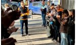 El mismo día en que entregaba su placa, su grupo le esperaba para mostrarle todo su apoyo.