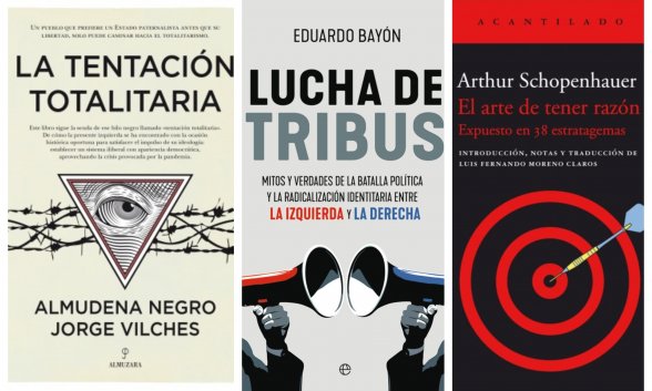 La tentación totalitaria (Almuzara), de Almudena Negro y Jorge Vilches. Un libro que defiende la libertad de pensamiento económico y de pensamiento frente a los nuevos totalitarismos que se ejercen desde la democracia y por la democracia. Se publicó poco después de la llegada de Pedro Sánchez al poder político de España, quizá motivado porque el autócrata de Moncloa ya apuntaba maneras, porque como dice el libro «un pueblo que prefiere un Estado paternalista antes que su libertad, solo puede caminar hacia el totalitarismo», ¡y es que con tal de que no gobierne la derecha, todo vale!