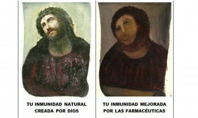 Observen el grabado adjunto, obtenido con la barrabasada que alguien perpetró en una iglesia aragonesa. A un lado, el sistema inmunitario que, al final, es quien vencerá la virus; al otro, una vacuna de la que muy poco sabemos y los pocos que saben, no se sabe si muy poco, muy poco nos han enseñado. Para ser exactos, nada.